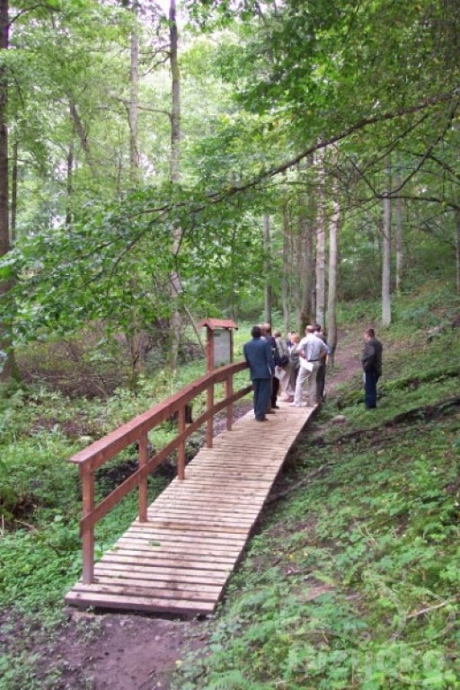 Two sites on the trail, marked on the map with the symbol of a bonfire, have been equipped with wooden umbrella roofs, tables and seats. Visitors may stop here for a bit of rest, make a fire in a specially prepared place, roast a sausage and take time to reflect or to sing a song. The path length is about 2,5 km, so it is neither difficult nor too long. For the most part, the trail follows narrow forest roads or the forest edge, where good nature viewing opportunities are plenty. The path also leads by an old anti-tank ditch, reminding passers-by of the events of WWII.